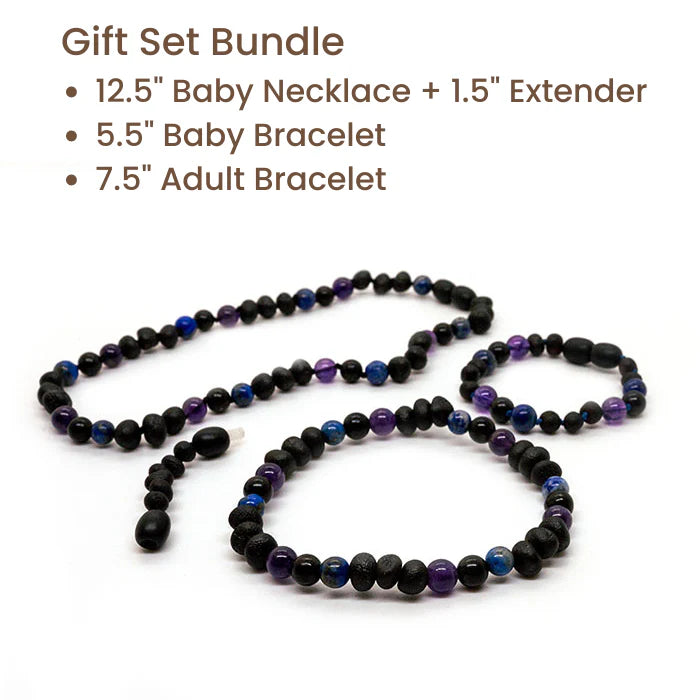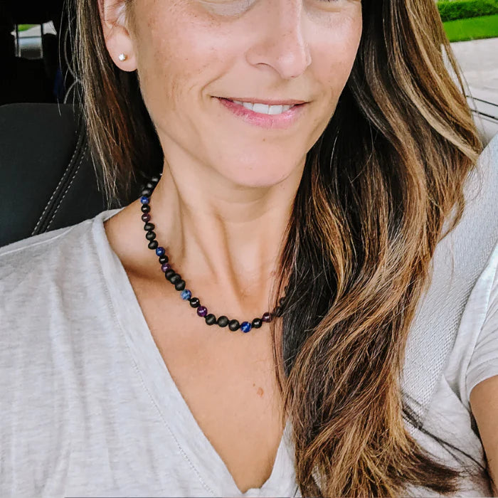 Baltic Essentials EMF Protection Shungite Baltic Amber Necklace Raw Cherry Lapis Amethyst