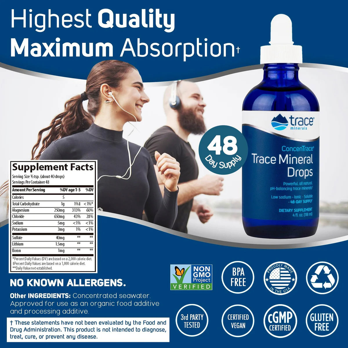 ⭐️ The drops contain over 72 naturally occurring ionic trace minerals, including calcium, silicon, selenium, phosphorus, iodine, chromium, manganese, iron, copper, molybdenum, zinc, and vanadium. Some recommend mixing the drops with juice or food to mask their strong taste