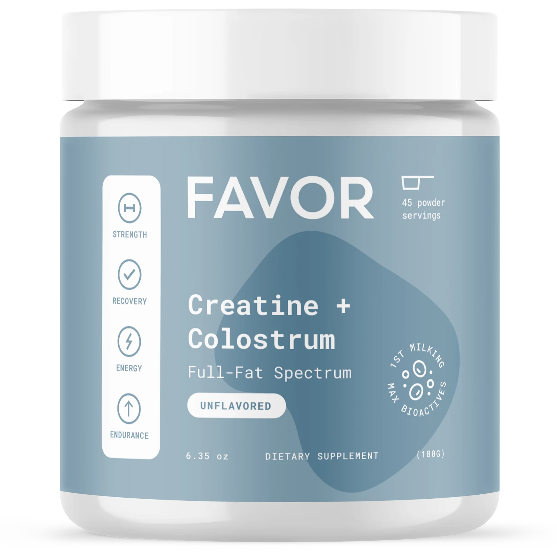 ⭐️ "Favor sources its colostrum from family-owned dairy farms across the Midwest. Our cows have access to outdoor grazing, enjoying fresh air, sunlight, and a diet primarily consisting of nutrient-rich grass and haylage designed by our nutritionist to provide the cows exactly what they need to thrive. During winter, they may also consume nourishing forages like dried grass, hay, or alfalfa, along with smaller quantities of supplemental non-GMO grains. While some companies label their colostrum as "grass-fed," it's important to note that the current supply chain or Colostrum does not provide a grass fed only option. Grass fed is a loose marketing term, meaning cows are not 100% grass-fed. We prioritize transparency and avoid making misleading claims to ensure clarity for our customers. Our products come from farms that provide optimal nutrition for their cows, providing a high-quality source of colostrum. We are committed to delivering the best possible product for your well-being and maintaining honest communication with our customers"